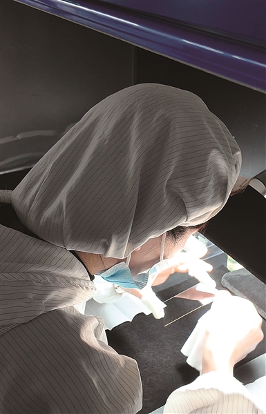 高丽丽拿起两片玻璃,在特定灯光下反复比对。她屏住呼吸,寻找着比头发丝还细微的瑕疵。